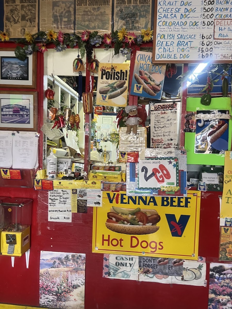 Small hot dog shop. Has different hot dogs (Chicago dog, Colorado dog[ green chilies], brats, etc.) . Only thing that was irritating was that they only take cash, but it's behind a gas station and you can use their ATM. I would have given them a half star for that but they didn't have it.